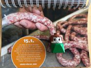 Das Foto (vergrößerbar per Klick) zeigt das Tagesblatt vom 15.1. aus dem Jahreskalender der "Hofheimer Allianz". Wirtin Andrea macht da gerade in unserem Schlachthaus die beliebten "Iwinner Bratwürscht". Nachträglich.aufs Foto projeziert ist die Duplo-Figur namens "Andrea". Diese ist eine der liebsten Spielfiguren unserer - zum Zeitpunkt der Fotografie - zweijährigen Nachbarin Clara. Als die kleine von ihrem Papa hörte, dass auf dem Kalender die Hand von Andrea abgebildet ist, hat sie sofort ihre "Duplo-Andrea" geholt und neben dem Kalender platziert.