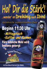 Damit man sich die erforderliche Stärk' fürs neue Jahr holen kann, bieten wir unseren Gästen eine große Auswahl aus der Pallete der Kulmbacher Bierspezialitäten. Dabei dürfen natürlich an diesem Tag das stärkbringende Mönchshof Bockbier sowie die beiden Ermetzer Biere "Rebell Hell" und "975er Kellerbier" nicht fehlen!